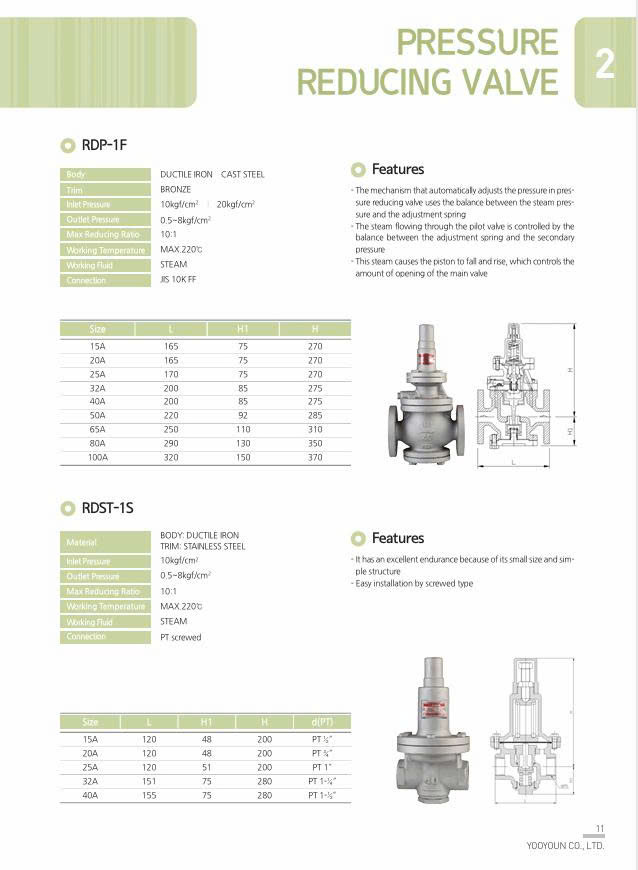Thông số kỹ thuật van giảm áp hơi DN25 RDP -1F